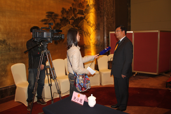 新任主委施卫东接受镇江电视台记者的现场采访