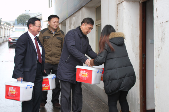 2016年1月29日上午,由九三学社镇江市委副主委钱伯安,九三学社润州委员会副主委赵俊华、刘军,九三学社镇江市委办公室主任朱慎康一行组成的送温暖慰问团来到润州区润州山路社区,代表九三学社润州委员会、和记大酒店向社区负责同志送上了慰问金及由我社成员、润州委员会副主委、和记大酒店董事长刘军所精心准备的年夜饭,给社区贫困家庭送上一份民主党派基层组织关爱民众的暖暖心意,送上一位民营企业家的回报社会的浓浓爱意。
