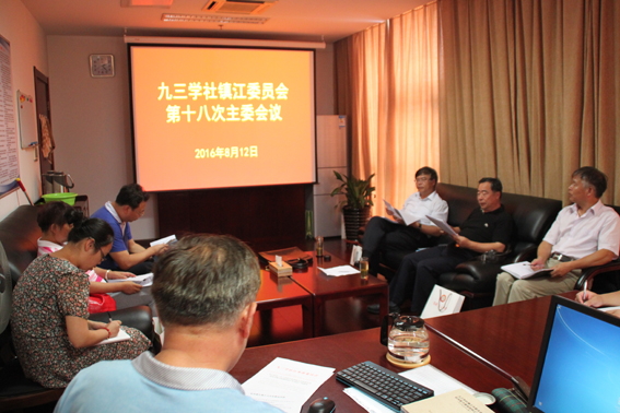 8月12日,九三学社镇江市委在机关主委办公室召开七届十八次主委会,研究部署2016年社市委换届工作。