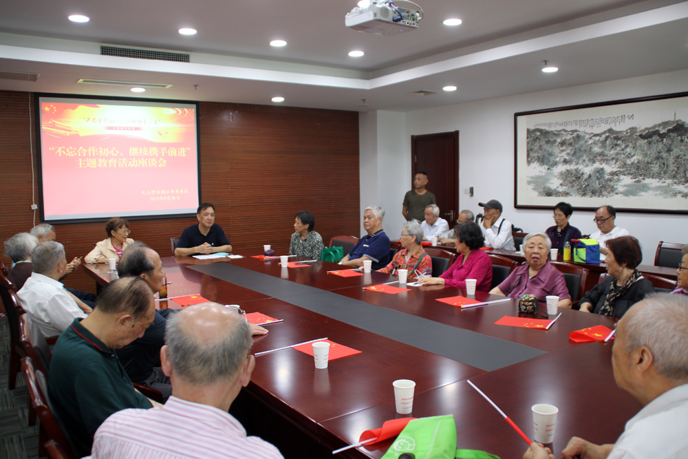 9月30日上午,社镇江市委四十多位老同志济济一堂,召开“不忘合作初心”主题教育座谈会。社镇江市委驻会副主委带领大家重温了九三学社先贤主动接受中国共产党领导的历史事实,回顾了九三学社和中国共产党携手奋进的光辉历史,正是因为选择了正确的政治道路,坚持中国共产党的领导,九三学社才能不断有所作为,不断取得进步,在中国革命和社会主义建设各个方面发挥重要的作用。老同志们一朝聚首,契阔谈�,畅谈各自参与新中国建设的经历和感受,讲述祖国与自己共同成长的独特经历,场面热烈而又融洽。